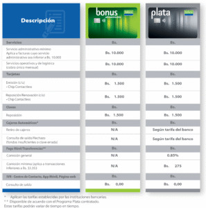 Tarifas tarjetas Bonus Alimentación y Plata